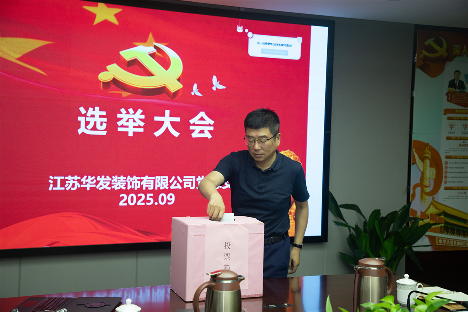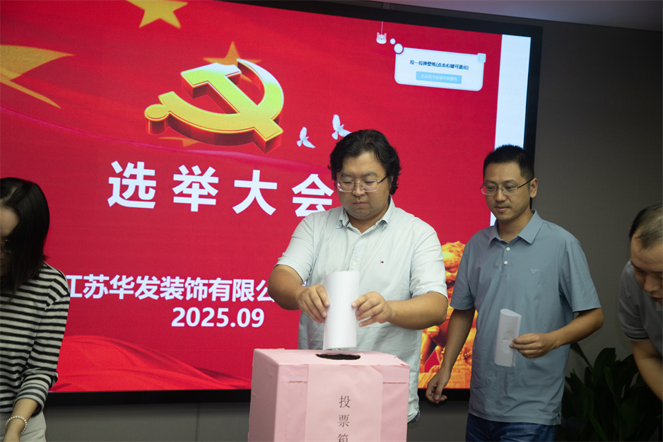 在莊嚴(yán)肅穆的國歌聲中,換屆選舉環(huán)節(jié)正式開始。會議宣讀了集團(tuán)黨委關(guān)于同意華發(fā)黨總支召開黨員大會進(jìn)行換屆選舉及候選人名單的批復(fù),會議審議并通過了《籌備工作報(bào)告》、《中共江蘇華發(fā)裝飾有限公司總支委員會選舉辦法》、候選人名單、監(jiān)票人及計(jì)票人名單。隨后,大會嚴(yán)格按照選舉程序,以無記名投票、差額選舉的方式,進(jìn)行了現(xiàn)場投票。經(jīng)公正計(jì)票,選舉產(chǎn)生陳明、朱崢光、朱明星、趙宏貴、李紅雨、徐家匯、顏吉利等7位同志為新一屆黨總支委員會委員。